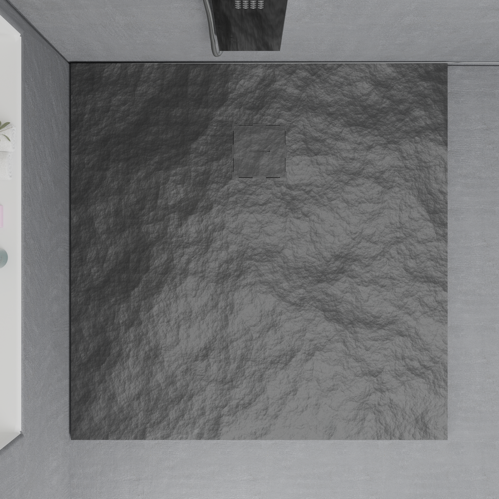 Cadă de duș pătrată, ultra-slim, gri închis, dimensiuni 90x90 cm - Eleganță minimalistă și confort modern pentru baia ta.