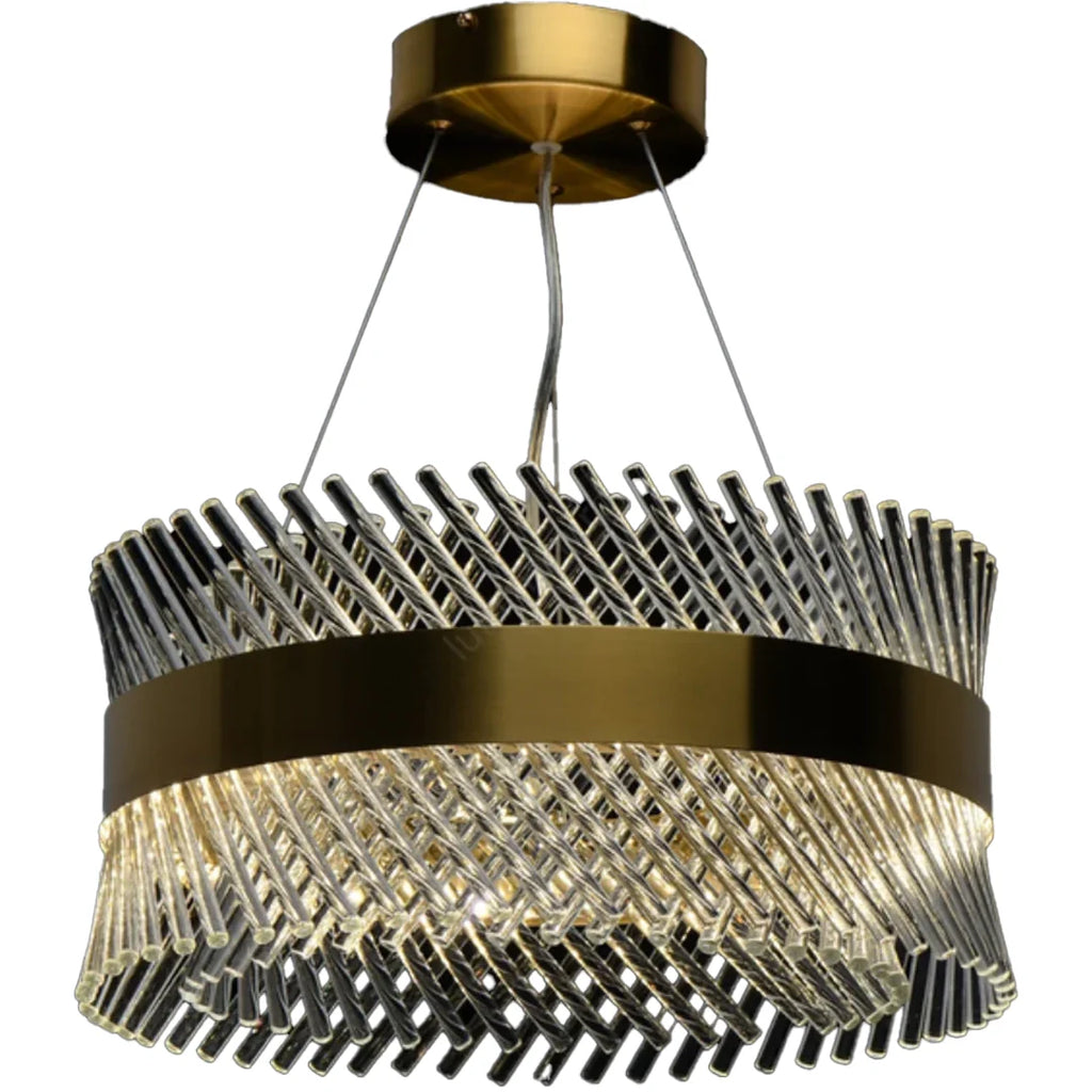 Design Luxos & Materiale Premium: Cu o forma rotunda si un finisaj auriu stralucitor, realizat dintr-o combinatie de cristal si metal, acest candelabru suspendat devine instantaneu punctul focal al oricarui decor, adaugand o nota de opulenta si modernitate.