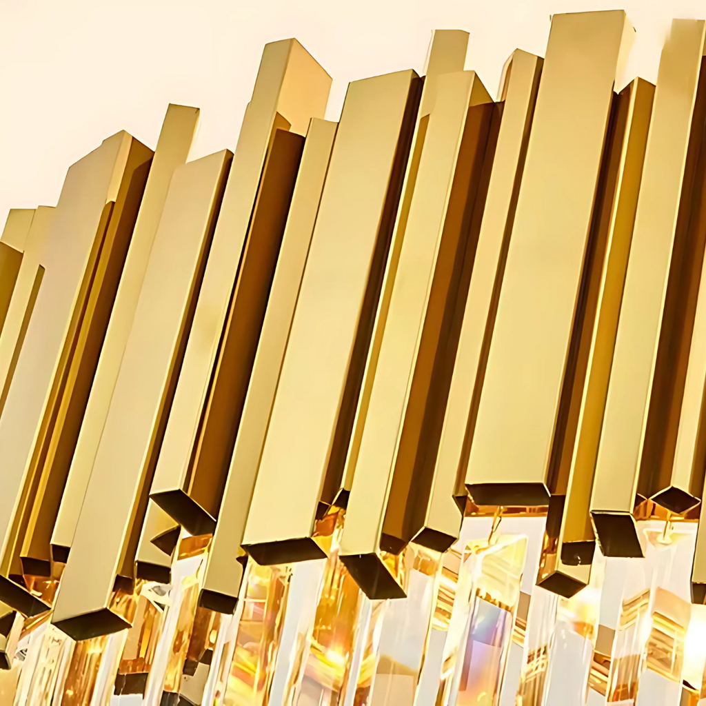 Candelabrul BLOIS este conceput special pentru spatii inalte, cum ar fi casa scarii sau holurile cu tavan generos. Cu o structura metalica aurie si cristale dispuse pe mai multe niveluri, atrage imediat atentia si adauga profunzime spatiului.