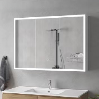 Oglinda este echipată cu iluminare LED alb rece (6000K) și sistem de dezaburire, asigurând vizibilitate optimă în orice moment al zilei. Cele două uși cu oglindă ascund un spațiu generos de depozitare, cu rafturi din sticlă securizată, ideale pentru cosmetice, produse de igienă sau accesorii de baie.