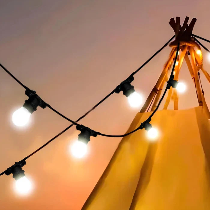 Ghirlandă decorativă de exterior/interior, culoare neagră, cu 15 socluri E27 distribuite uniform pe o lungime totală de 10 metri. Cablu rezistent, flexibil, potrivit pentru iluminat ambiental în grădină, pe terasă, balcon sau la evenimente. Compatibilă cu becuri cu filet standard (în funcție de model), oferă un aspect modern și elegant, ideal pentru crearea unei atmosfere calde și primitoare.