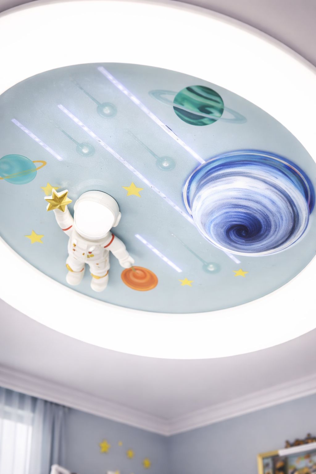 Această lustră inteligentă îți oferă flexibilitatea de a alege temperatura de culoare a luminii în funcție de preferințe și necesități. Poți opta pentru lumina rece, ideală pentru a stimula concentrarea în timpul lucrului sau al lecturii, lumina caldă, perfectă pentru a crea o atmosferă primitoare și relaxantă, sau lumina neutră, potrivită pentru iluminarea generală de zi cu zi.