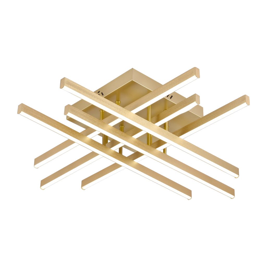 Realizată din metal și acril, lustra îmbină rezistența cu un aspect estetic premium. Finisajul auriu pune în valoare liniile moderne ale celor patru elemente luminoase, transformând-o într-un accent decorativ elegant pentru living, dining, dormitor, birou sau orice spațiu contemporan.