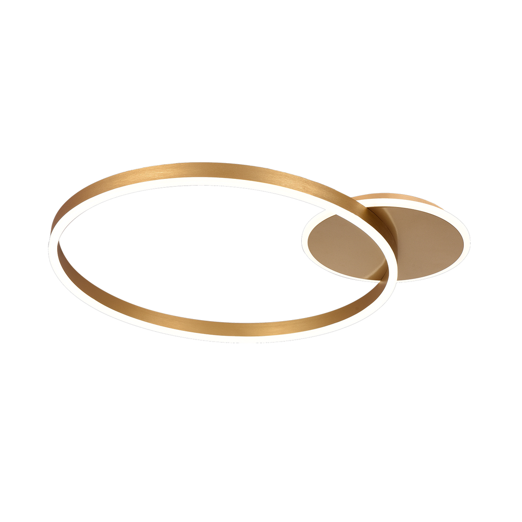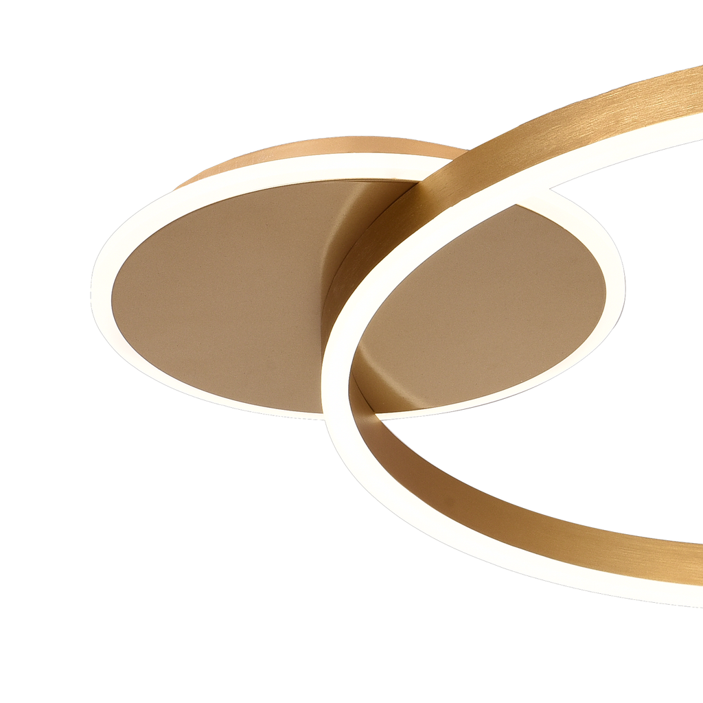 Îmbracă-ți spațiul cu un rafinament modern și o iluminare complet personalizabilă cu lustra LED RINOVA. Designul său elegant, compus din trei cercuri concentrice sau suprapuse, finisate într-o nuanță sofisticată de auriu, adaugă o notă de lux contemporan oricărei încăperi.