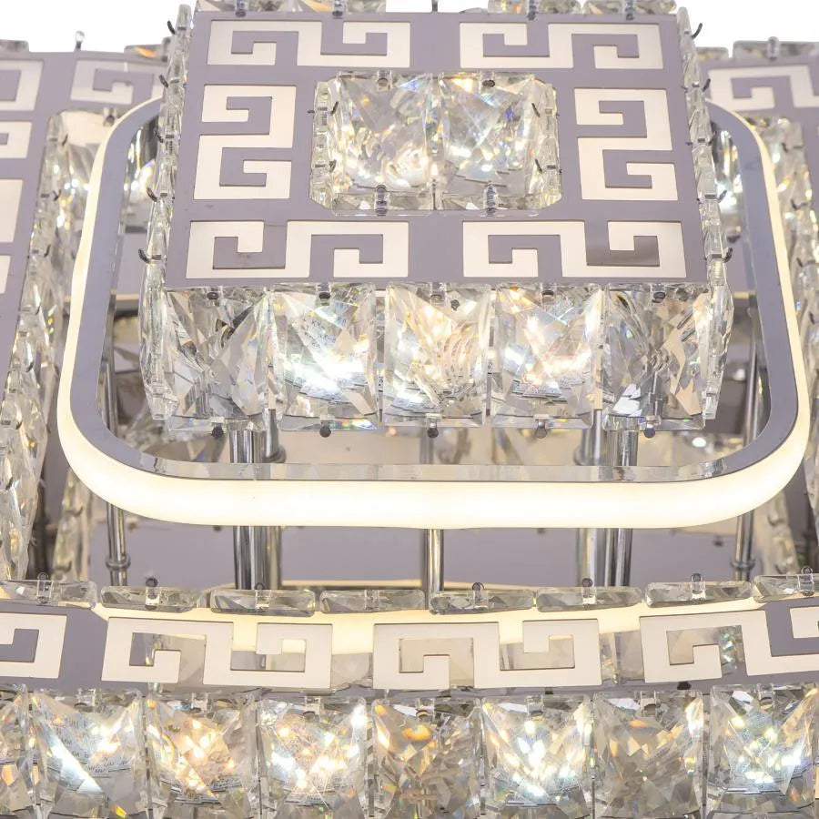 Lustra LED cu telecomanda si cristal ETAN 66W, lumina Rece/Calda/Neutra, Dimabila, Crom Lucios