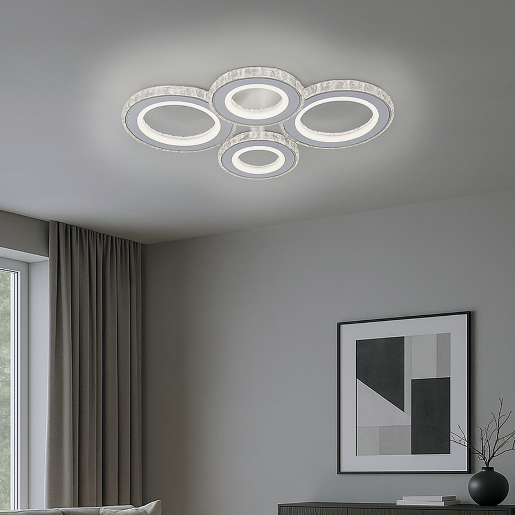 Nu in ultimul rand, lustrele din aceasta gama stau la baza confortului tau, ele avand capacitatea de a fi controlate printr-o telecomanda. Astfel, ai sansa de a manevra atat intensitatea, cat si tipul de lumina dispersat (calda-3000k, neutra-4000k si rece-6000k) printr-o simpla apasare de buton
