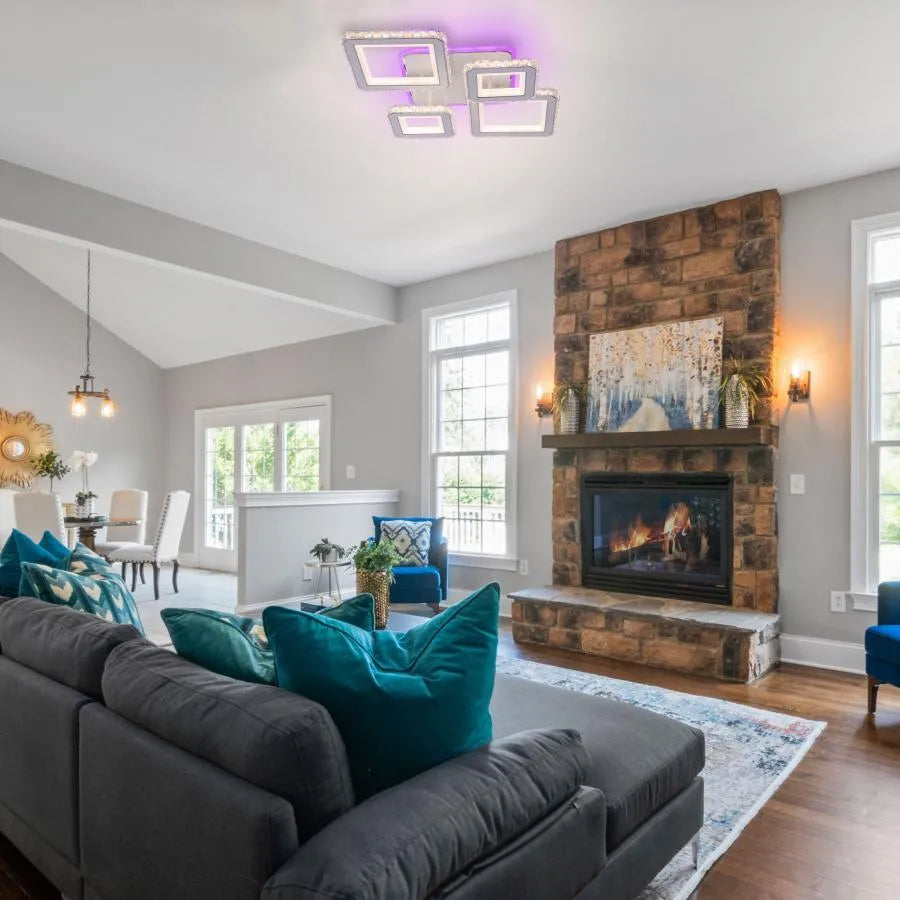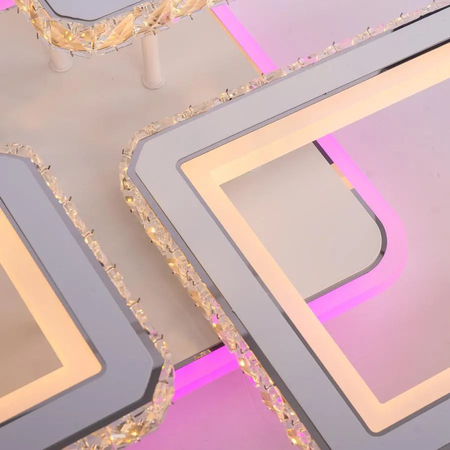 Lustra LED cu telecomanda si cristal QUADRIS RGB, 78W, 4 Patrate, lumina Rece/Calda/Neutra, Dimabila, Alb