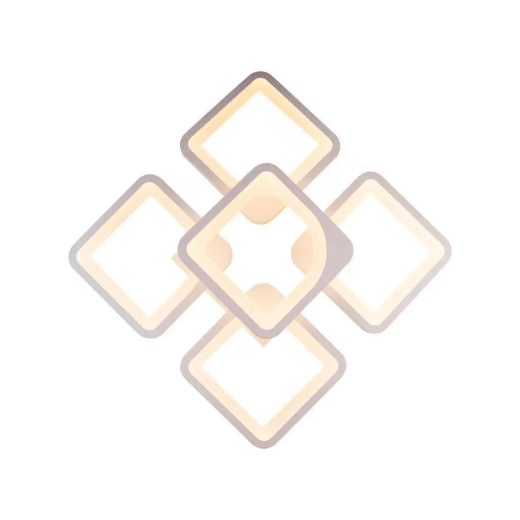 Lustra LED cu telecomandă ZOE este o piesă de iluminat modernă și puternică, cu un design format din cinci pătrate stilizate, finisate în alb. Cu o putere de 96W, oferă o iluminare amplă și versatilă pentru diverse spații.