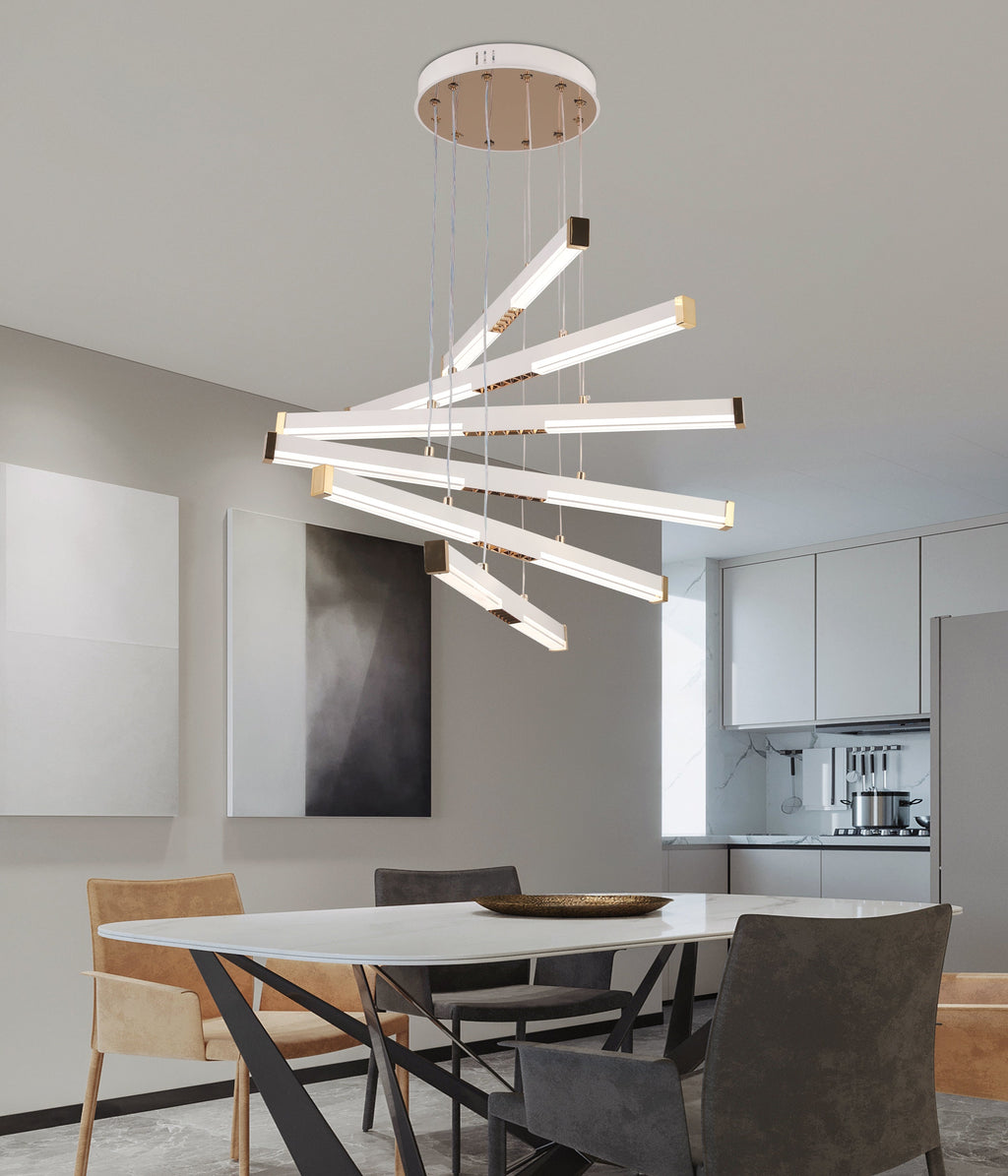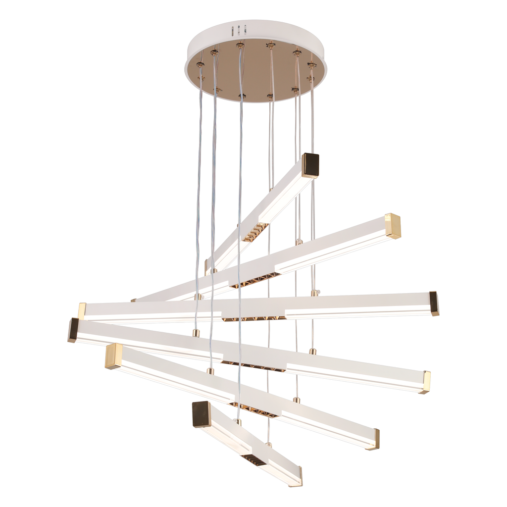 Lustra LED suspendată acril LT183/5WH este un corp de iluminat modern, cu design curat și finisaj alb, ideal pentru interioare contemporane. Cu o putere de 69W, oferă iluminare eficientă și uniformă, potrivită pentru livinguri, dininguri sau spații open-space.