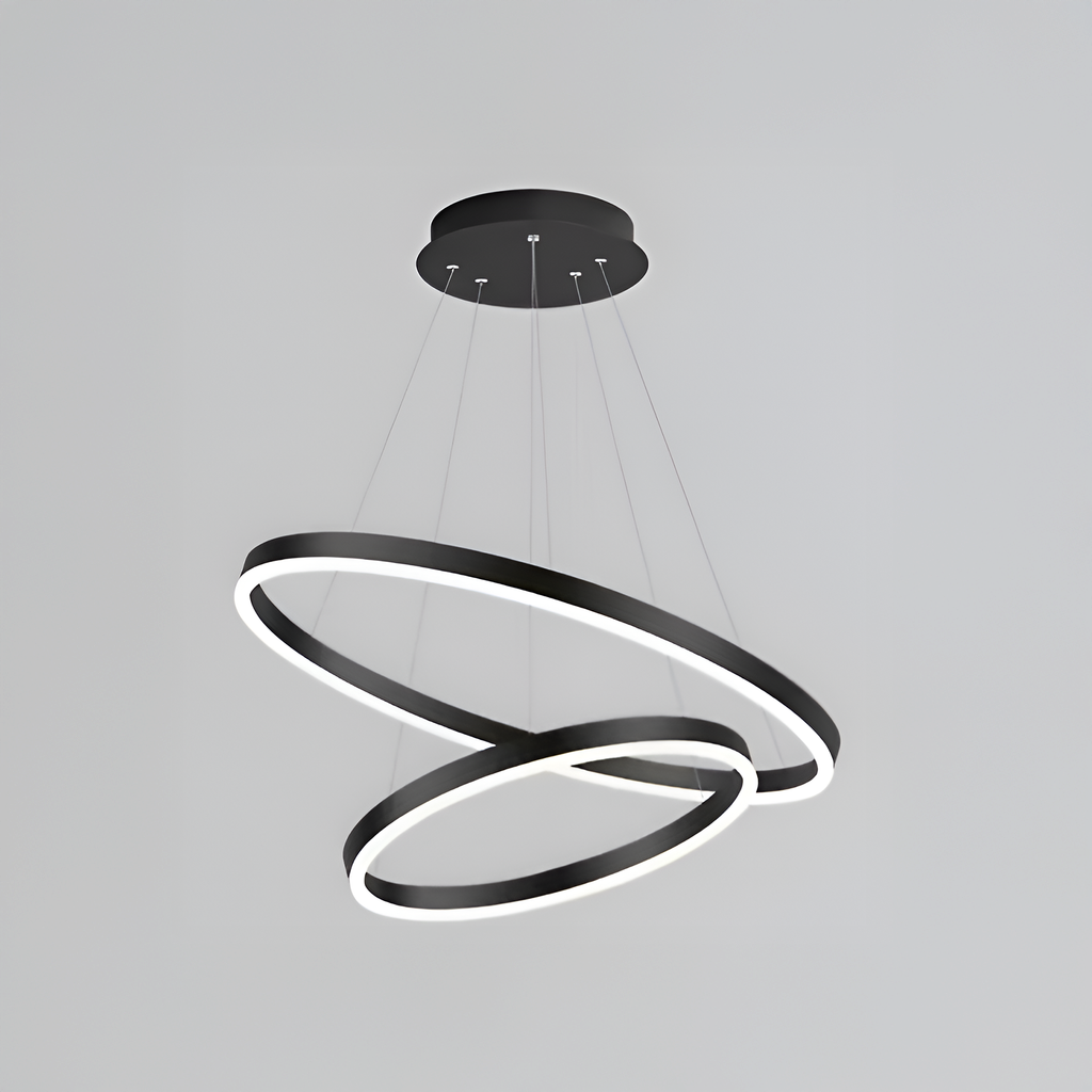 Lustra LED suspendata cu telecomanda CASIANA 40W, 2 Cercuri, lumina Rece/Calda/Neutra, Dimabila, Negru, Inaltime Reglabila