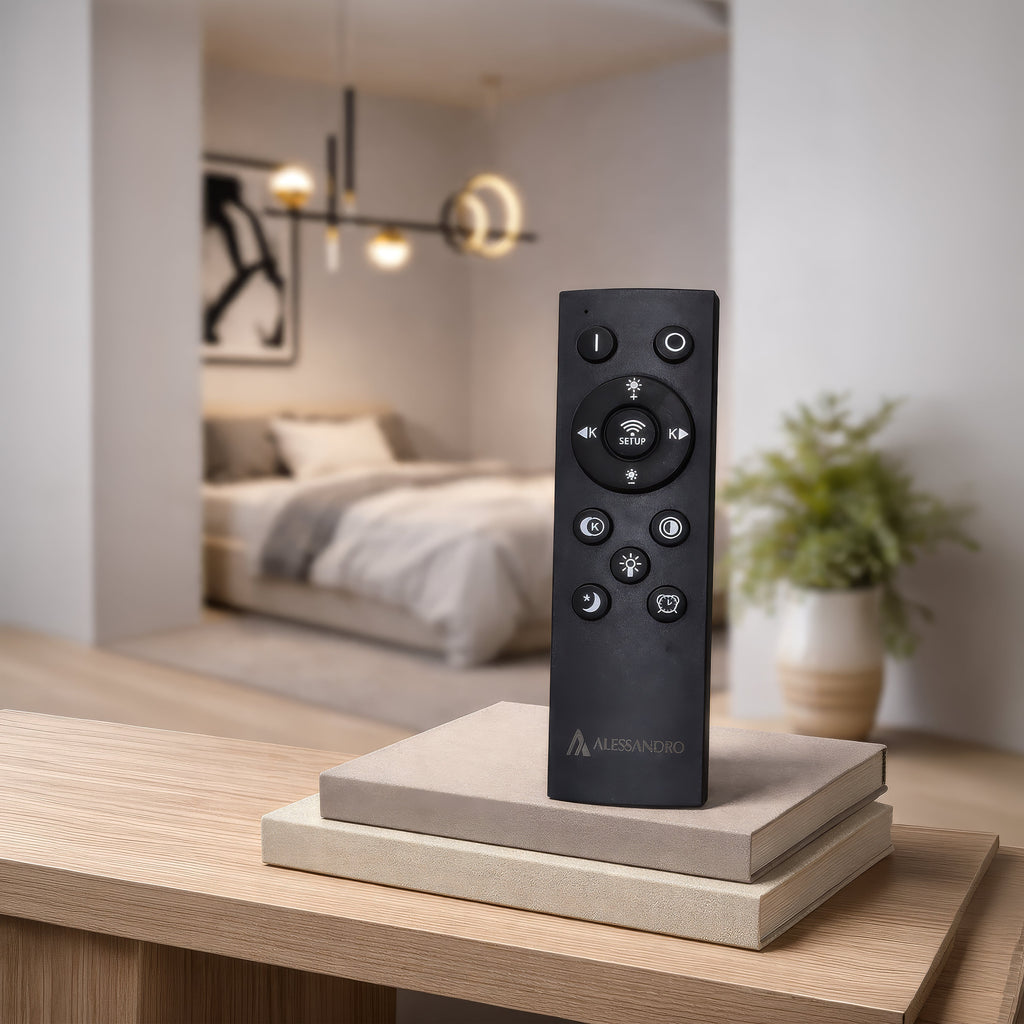 Deși descrierea nu menționează forma specifică, fiind LED cu telecomandă și funcție de ajustare a temperaturii culorii (rece, caldă, neutră) și intensității luminii (dimabilă), ne putem aștepta la un design contemporan și versatil. Telecomanda îți oferă control asupra atmosferei luminoase, permițându-ți să creezi exact ambianța dorită.