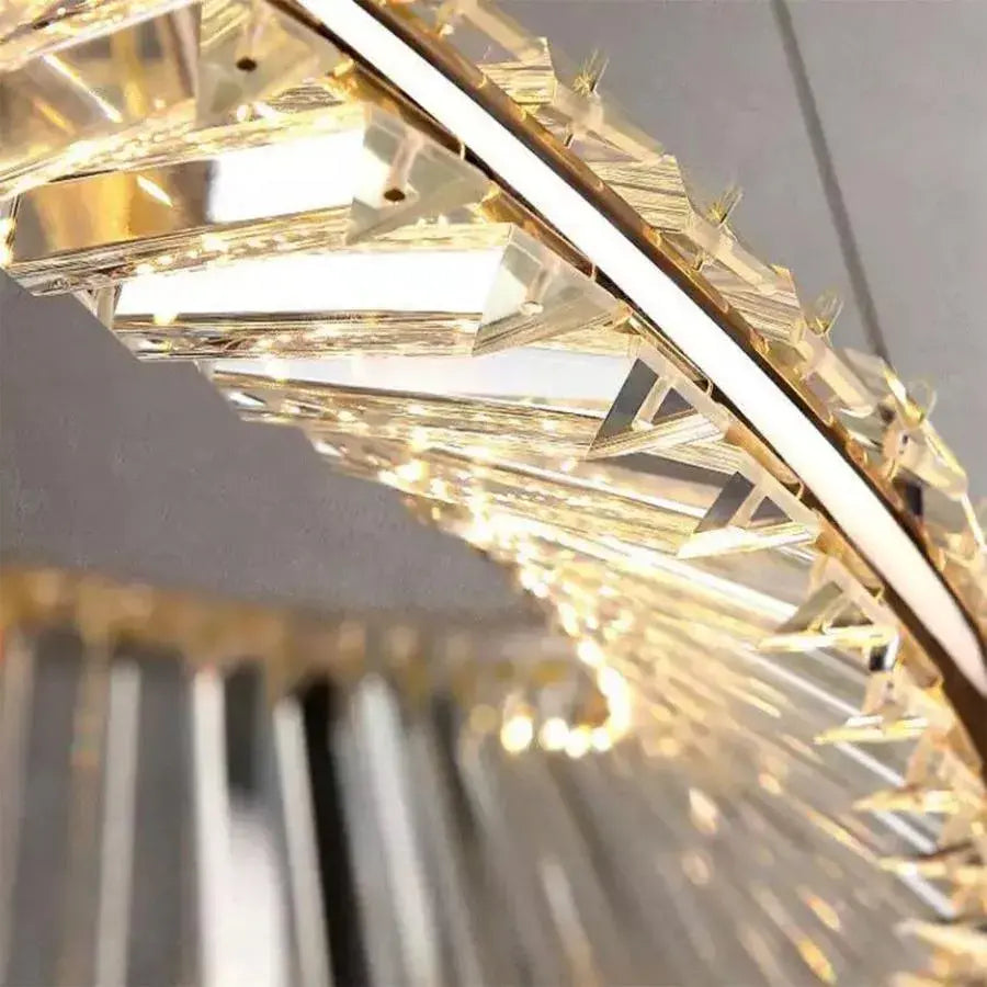 Cristalele de calitate superioară reflectă lumină în mod fascinant, creând un joc sclipitor de lumini și umbre în jurul lustra. Finisajul auriu adaugă o notă de eleganță și lux, încântând privirile și creând o atmosferă opulentă. Telecomanda inclusă vă permite să schimbați culoarea în funcție de preferințele dvs., oferindu-vă o experiență personalizată și unică.