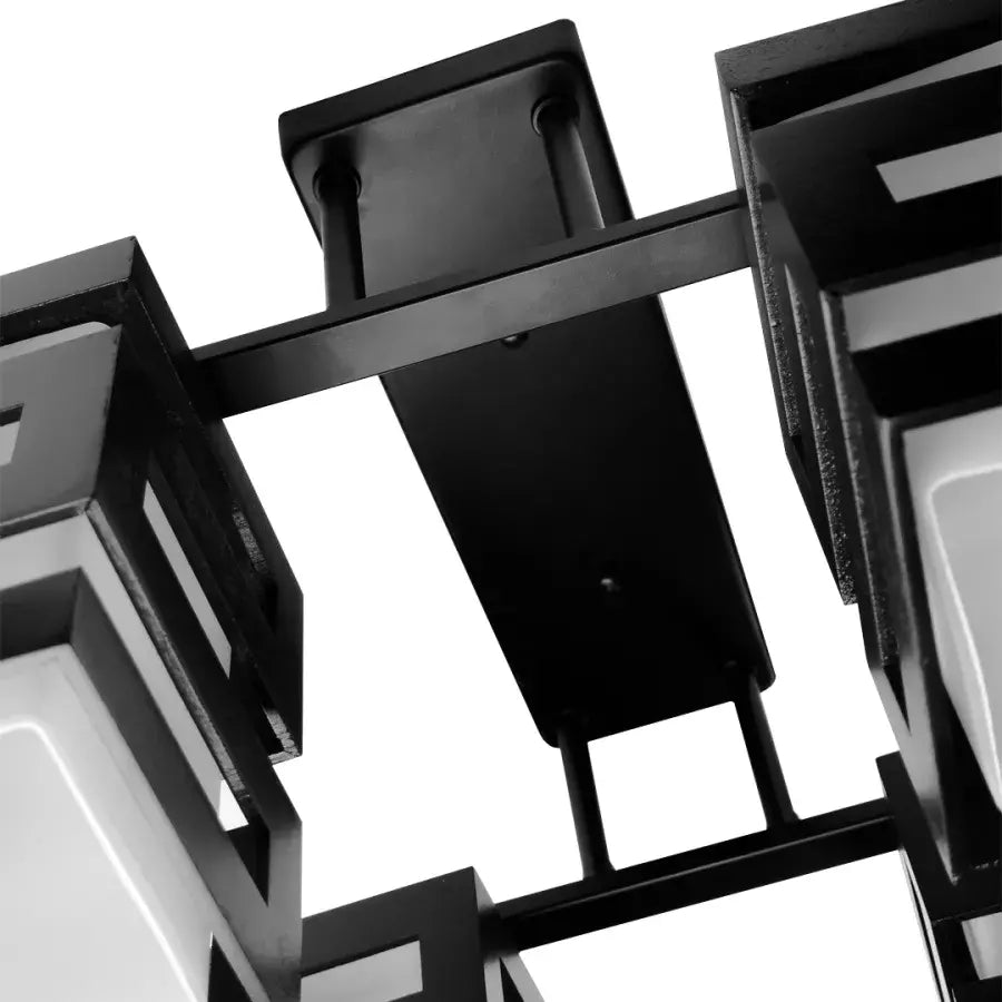 Design Modular, Impact Contrasat: Abajururile sale in forma de cub, finisate in negru mat, alterneaza cu elemente albe luminoase, creand un joc vizual de adancime si contrast, o declaratie de stil modern ce atrage privirea.