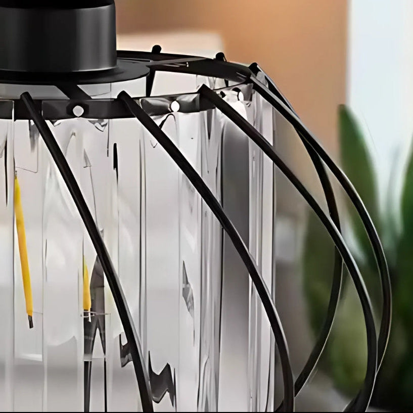 Design Fascinant, Efect Vizual Unic: Abajurul sau, realizat dintr-o retea intricate de metal negru, inconjoara un difuzor de lumina discret, proiectand pe tavan o explozie de raze luminoase ce captiveaza privirea si extinde vizual spatiul.