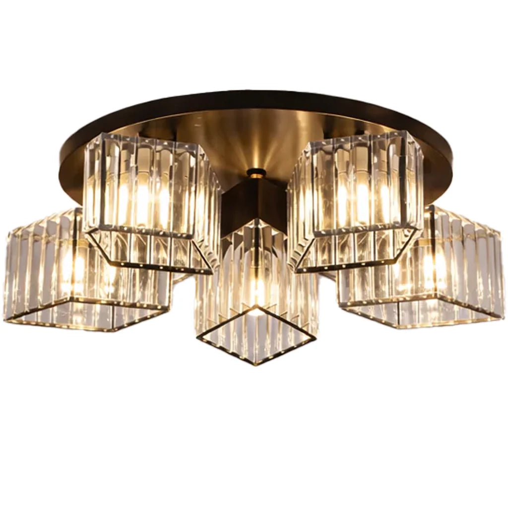 Echipată cu 5 socluri tip E27, lustra oferă o iluminare generoasă și uniformă, potrivită pentru livinguri, zone de dining sau dormitoare spațioase. Abajururile reduc orbirea și creează o atmosferă plăcută, ideală pentru utilizare zilnică.