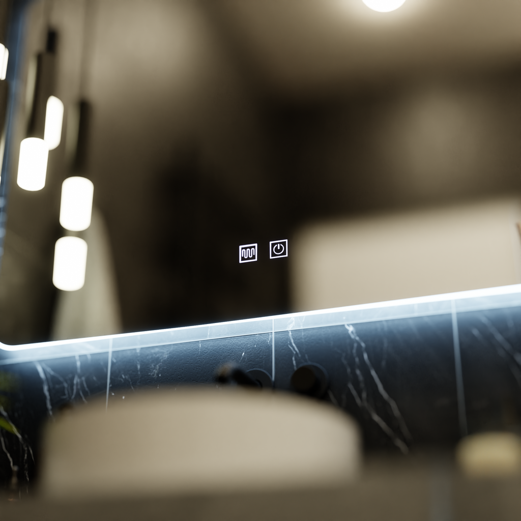 Iluminarea LED 6000K (lumină rece) oferă o claritate excelentă pentru machiaj, bărbierit sau rutinele zilnice, iar funcția dimmable permite reglarea intensității luminii în funcție de ambient și preferințe. Controlul se face simplu și intuitiv prin panou touch, integrat elegant în suprafața oglinzii.