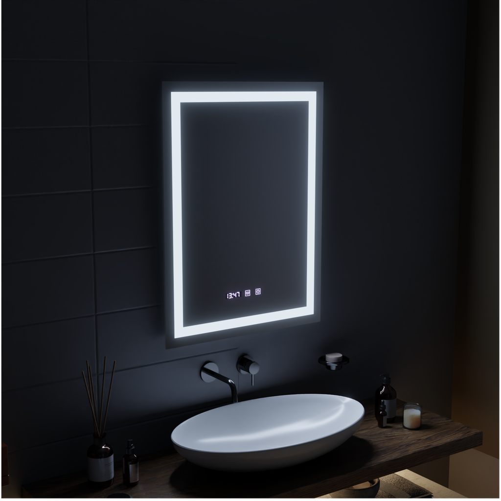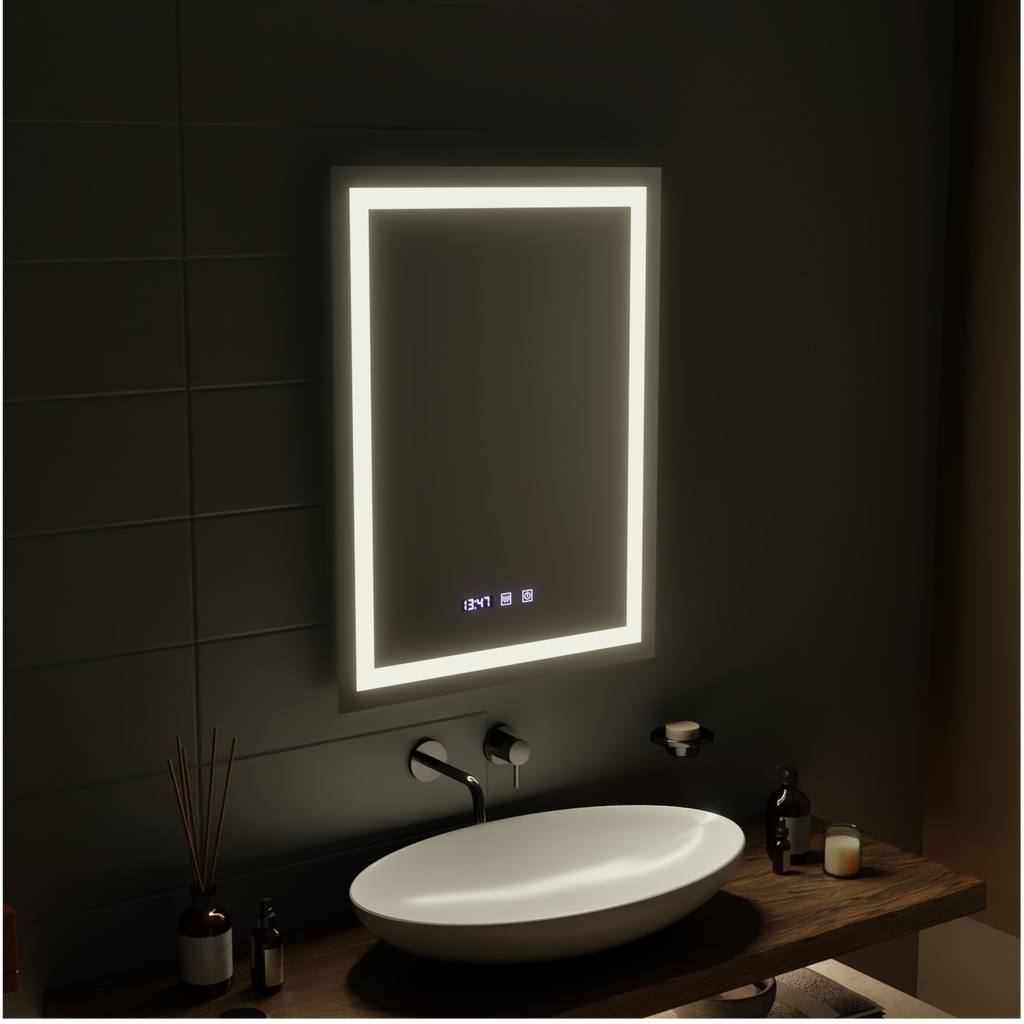 Oglinda LED Touch MODENA Sistem Dezaburire, Ceas si Temperatura 60x80 cm
